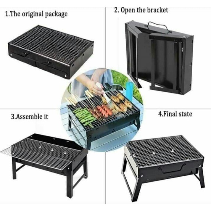 DESKRIPSI PRODUK PEMANGGANG PRTABLE YANG BISA DI LIPAT BBQPanggangan portable Alat pemanggang portable ini sangat cocok untuk segala kondisi baik outdoor maupun indoor, mudah untuk dibawa kemana mana. Bisa Dilipat Dimensi 35x27x23cm dengan desain yang menarik, kaki bisa dilipat sehingga memudahkan untuk dibawa bawa.Spesifikasi:- ketebalan bahan 0.4mm- cat coating anti