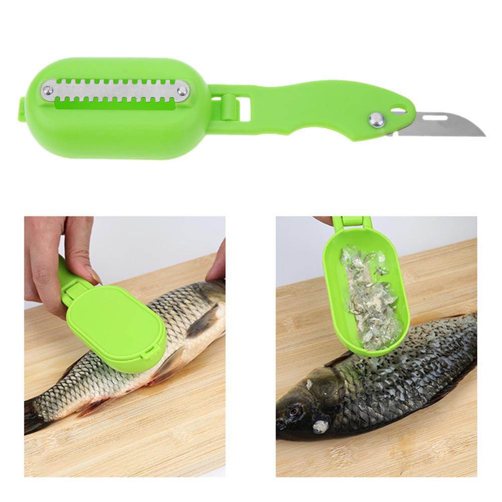 Alat pembersih sisik yang sangat praktis, mau masak ikan jadi mudah, wajib dimiliki untuk dapur andaBerbeda dengan keluaran sebelumnya, yang model baru ini ada pisau di bagian pembersih sisik, lebih tajam sehingga sisik dapat dibersihkan hingga tuntas. Di bagian atas tepatnya di bagian pegangan terselip pisau iris stainless fungsinya untuk iris ikan atau bedah perut ikan untuk buang insang ikan.Bahan : PVC & stainlessUkuran : 9.5 cm x 5.5 cm x 2.5 cmWARNA RAND