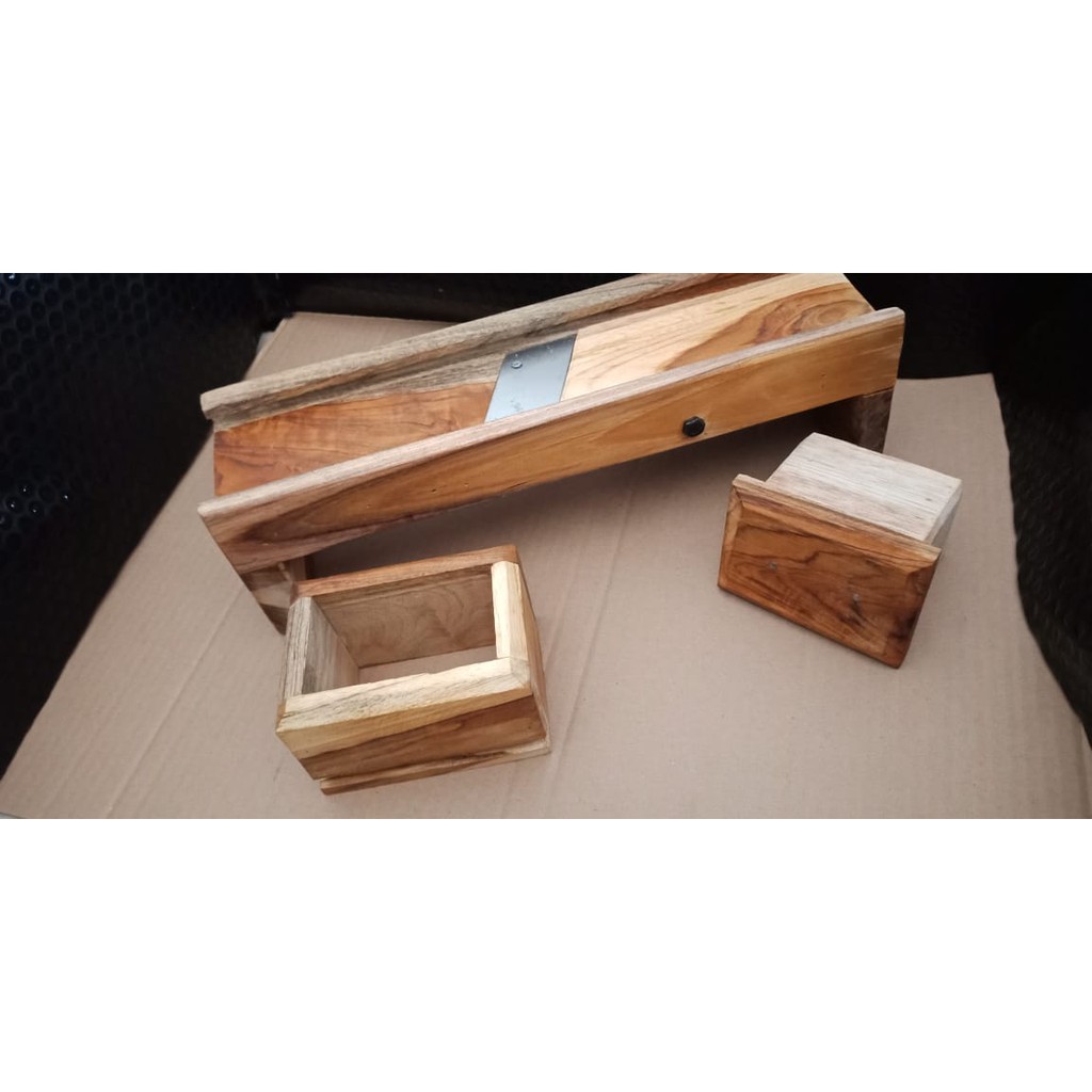 1. Bonus pisau dapur murah kualitas mewah stainless.2. packing sangat terjamin menggunakan BUBBLE WRAP sesuai di gambar dalam ny dus box tebal.3. Bisa Bayar COD/ Bayar ditempatKurang apa lagi kemudahan yang di berikan toko kami-Terlaris dan produk Asli dan Halus original dijamin Murah dan berkualitas Hati-hati dengan produk lebih murah tapi rasa Bonus Pisau (PROMO) Pisau bisa diganti dan gratis konsultasi sampai puas Alat Pemotong Bawang dan Keripik Serbaguna apakah anda masih memotong bawang, cabai, singkong, kentang, pisang, wortel, tempe, dsb pake pisau biasa?kalo iya, tentu memotong sangat lama, dan beresiko.kami rekomendasikan alat pemotong serbaguna dari kayu pinus yang dipilih untuk memotong bahan dapur hanya dg satu alat ini anda akan memotong bahan dapur dg lebih mudah, cepat, dan aman tanpa pake ribet dan gak pakai nangis kalau iris bawang ===============Ukuran : 35x11x10cm ukuran kotak potong 12x8x7 DAPATKAN MANFAAT BERLIMPAH SAAT MEMILIKI ALAT PEMOTONG SERBAGUNA INIsatu alat ini Serbaguna bisa untuk memotong1. Bawang merah. bawang putih. cabe, 4. wortel. kentang. 6. keripik Singkong. keripik pisang. keripik ubi9. keripik talas 10. kripik tempe 11. keripik pare 12. dsb 10 kelebihan alat ini 1. Seluruh papan dan kotak wadah dari kayu halus. 2. Pisau awet tajam dan bisa diganti kalo sudah tumpul3. hasil irisan sama tebal dan tak hancur.4. bisa diatur KETEBALAN & KETIPISAN SESUAI SELERA5. awet tahan lama dan serbaguna6. kualitas EXPORT. 7.hasil irisan sama tebal sesuai keinginan.8. berat plus packing 1.2 kg .9. Harga murah manfaat berlimpah10. Kerja jadi cepat karena bahan bisa diiris bersamaan, tidak satu per satu.===harga normal 46.000,-harga PROMO 35.000,-packing kardus double tebalpacing luar BUBBLE WRAPjadi aman sampai tempat tujuansegera dapatkan alat sederhana dan tepat guna original dari kayu Jati halus, hanya disini.Siap kirim ke seluruh Indonesia, via Ninja , Pos Indonesia, JnT Express Anda bisa membeli Pisau cadangan pasah bawang / iris bawang atau ker