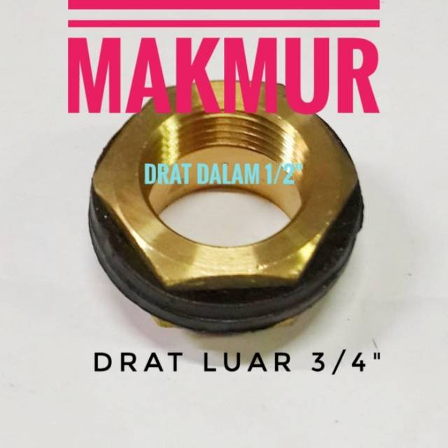 Moor tandon turren Kuningan 1/2" X 3/4" ( drat dalam 1/2" drat luar 3/