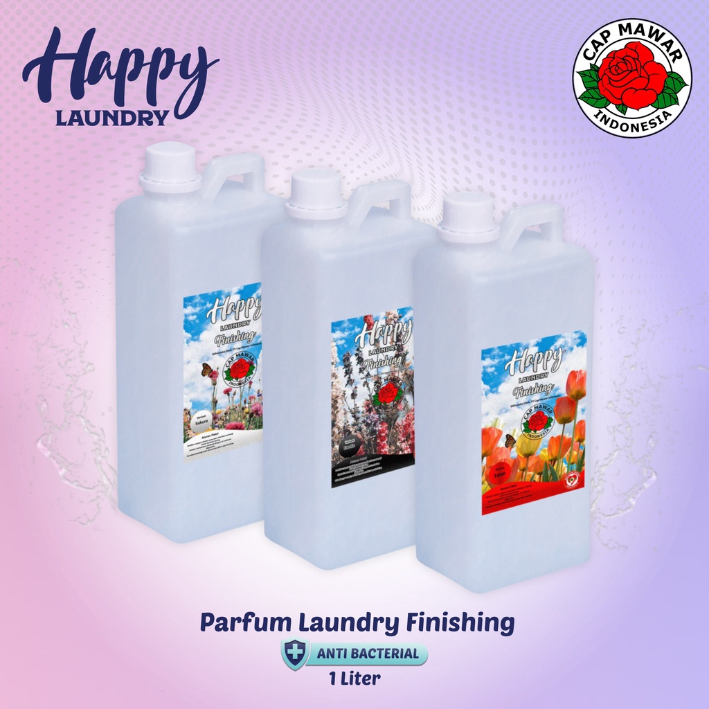 Antibacterial Perfume Happy Laundry Finishing 1 Liter Parfum Laundry Paling Wangi Grade A ParfumDengan parfum laundry Premium AntibacterialAnti Bacterial Perfume.Efektif Membunuh Kuman.Dijamin LEBIH WANGI dan TAHAN LAMAHadir Dengan 3 Varian Keharuman Mewah :1. SAKURA2. LOVE3. EXOTICPemakaian : DI KOCOK TERLEBIH DAHULU SEBELUM DIGUNAKANWELCOME DISTRIBUTOR/RESELLER BISA LANGSUNG DIGUNAKAN KE BOTOL SPRAYBISA PAKAI SETRIKA UAP.Perhatikan Pemilihan Jasa Kirim :JABODETABEK 1 Hari Pengiriman : Grab Sameday, Gosend Sameday, Grab Instant, Shopee InstantNext Day Dalam Pulau : JNE YESReguler Dalam Pulau : JNE REG, J&T Express, SiCepat REG, Ninja Xpress, ID Express, Anteraja, Shopee Express StandardReguler Luar Pulau : HANYA ID EXPRESS (JTR TIDAK BISA LUAR PUL