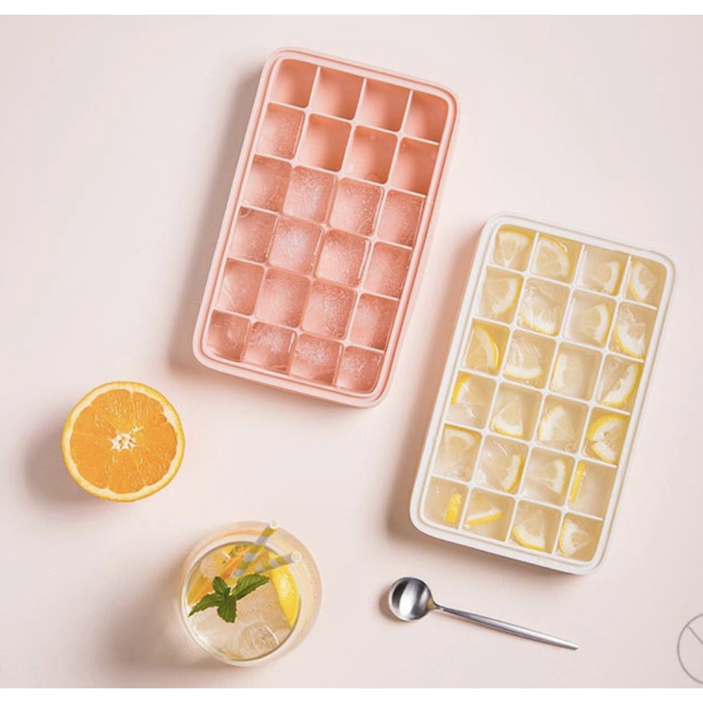 Silicone Ice Mold Cetakan Es Silikon High Quality Food Grade-Model nordic-Food grade-Dilengkapi dengan cover penutup sehingga mencegah bau-Mudah digunakan & dibersihkan-Tersedia dalam empat warna : Abu-abu, pink, biru muda, biru/kuningBahan :-High quality silicone (solid pp food grade)Ukuran :-21.8 x 13 x 3