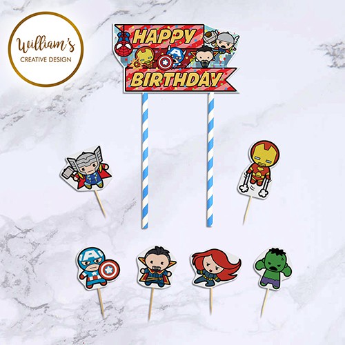 Cake Topper Happy Birthday SetTema : AVENGERS CHIBIBahan : art paper 210 gramUkuran : Banner (14 x 8 cm) dan 6 TopperHarga : Rp 15.000 / Set- Pembayaran di atas jam 12 berpotensi dikirimkan hari berikutnya- Pengiriman malam mengikuti jadwal pickup ekspedisi- HARAP MEMESAN JAUH2 HARI AGAR TIDAK MENGALAMI KENDALA BARANG HILANG/TELAT SAMPAI- TIDAK MENERIMA KOMPLAIN PESANAN YANG MENDESAK. PESANAN YANG MENDESAK MENJADI TANGGUNG JAWAB PEMBELI- MEMBELI BERARTI DIANGGAP TELAH MEMBACA DAN MENYUTUJUI ATURAN YANG DIBE